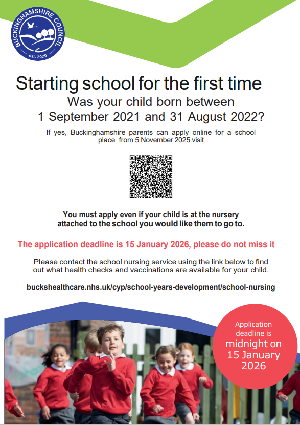 You can apply online at www.buckinghamshire.gov.uk from 5th November 2025.